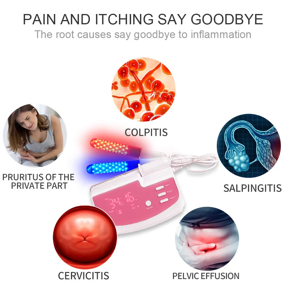- LIGHT FUNCTION: 630nm red & 465nm blue irradiation can penetrate elastic fiber of the vaginal wall, improve vagina blood flow, supply oxygen and nutrient to vaginal, repair damaged elastic fiber tissue, and strengthen the stretching force of the muscle around the vagina to achieve a tightening effect.
